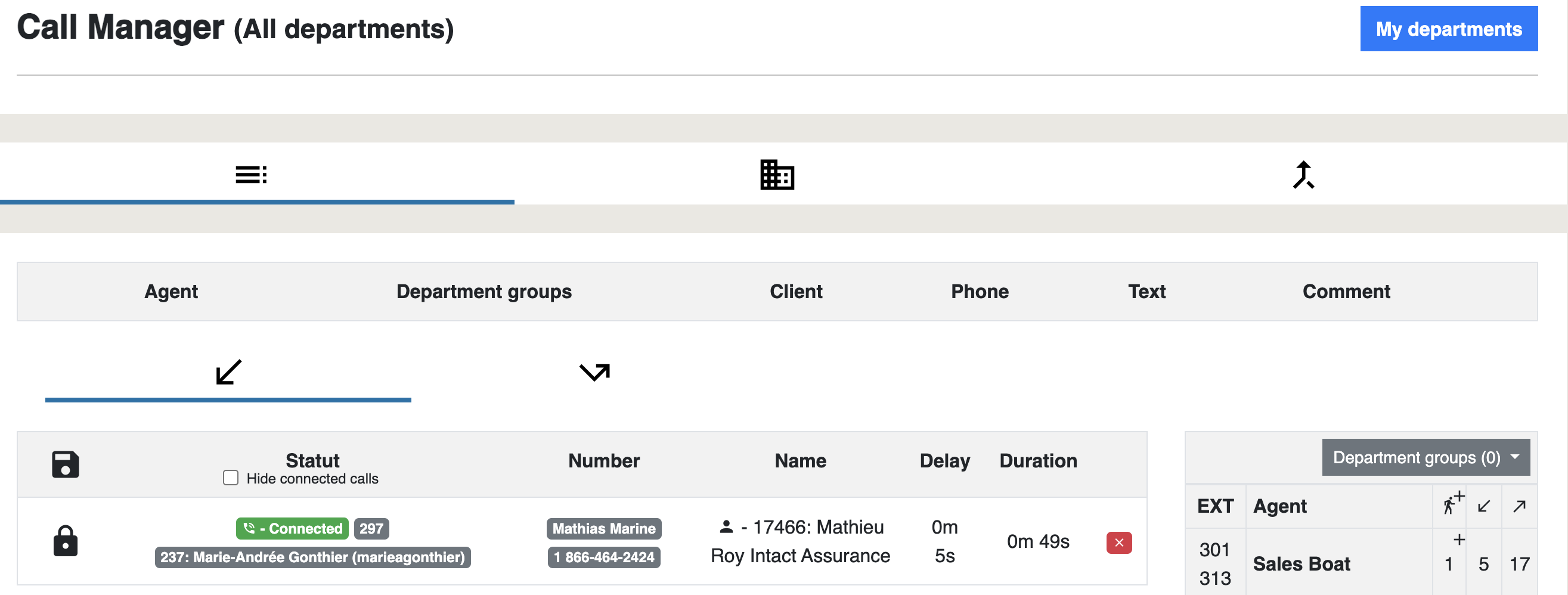 Ce module servira de voir vos appels en cours, les statistiques d'appel ainsi que tous les enregistrements. Prendre note que pour voir accès à cette page, vous devez avoir le rôle CALL_MANAGER. Pour les écoutes d'appel, il y a aussi un rôle. Je vous ...