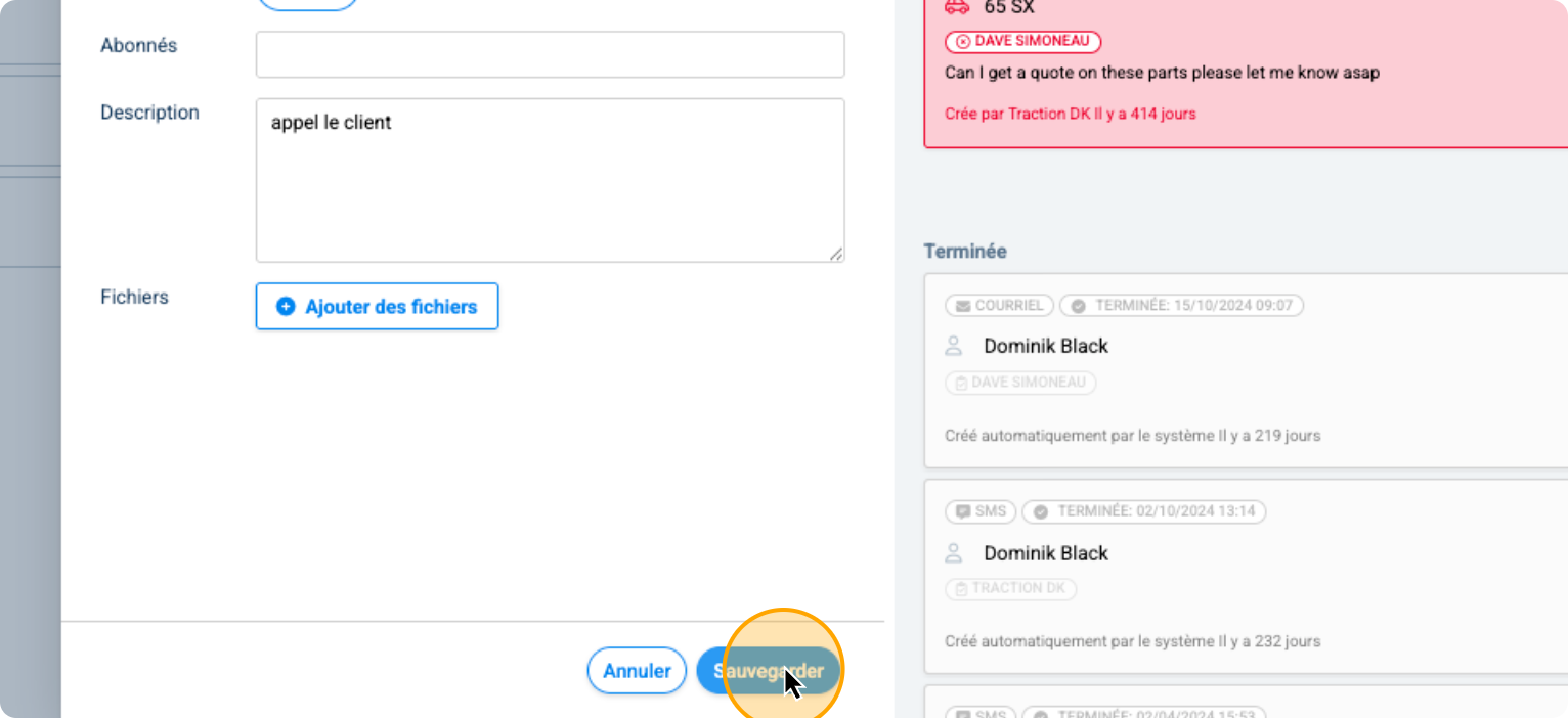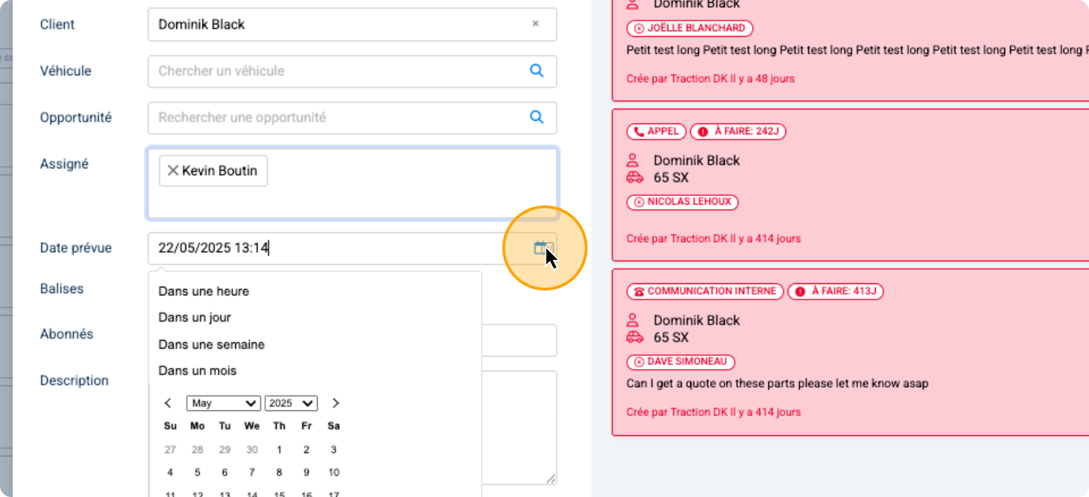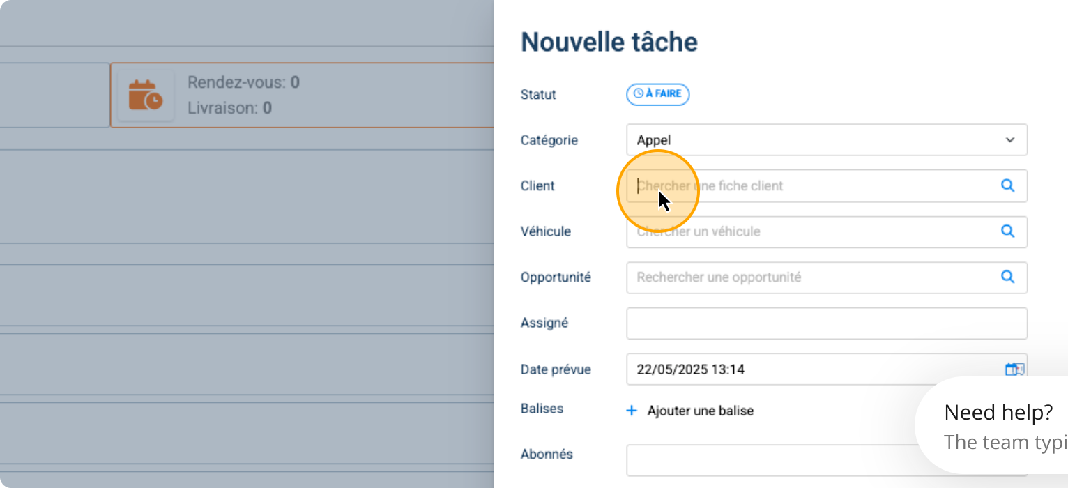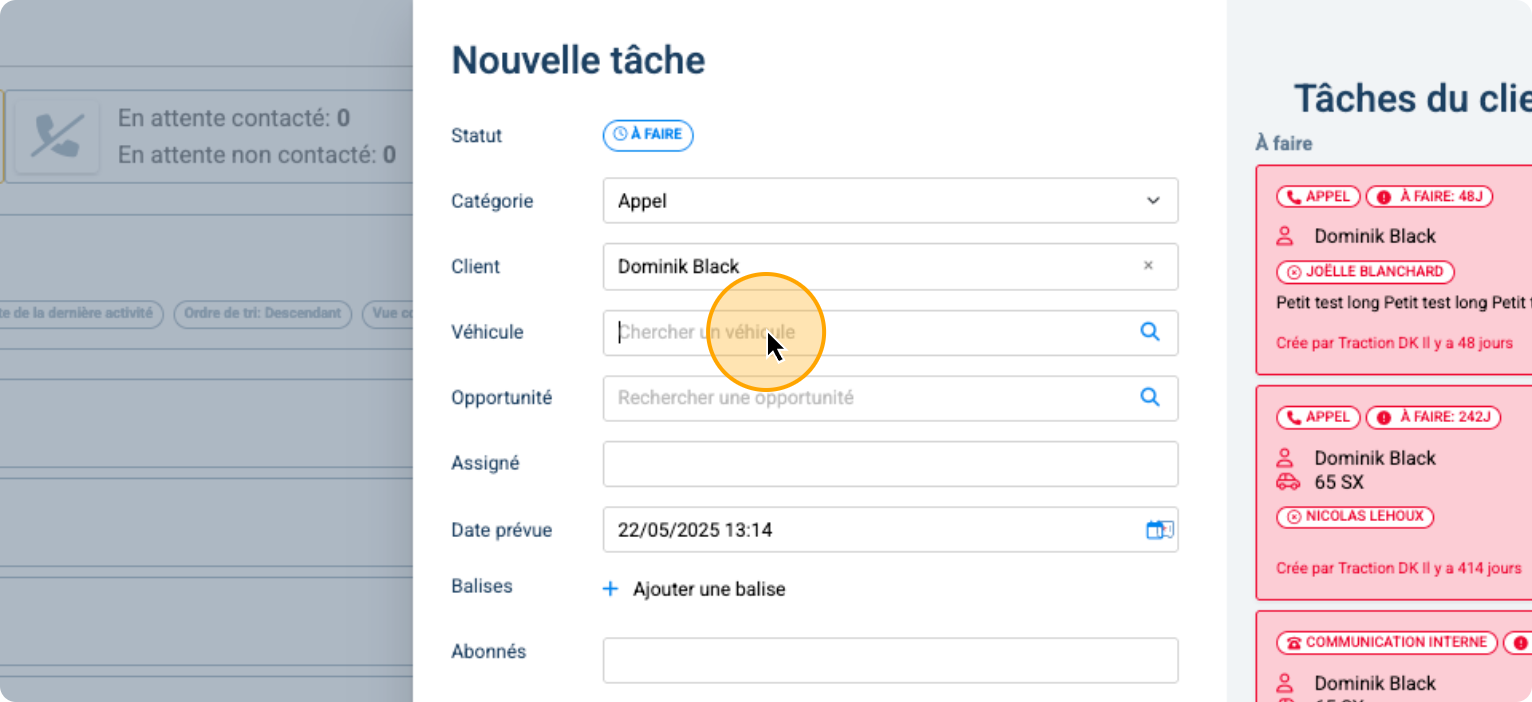 Prochainement, tu pourras associer un client à ta tâche en écrivant le nom du client.
