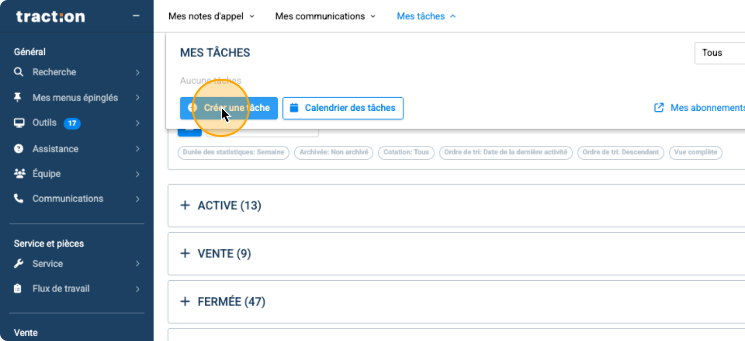 Dans ce guide, nous allons apprendre à créer et gérer une tâche efficacement. La création d'une tâche commence par l'accès à l'onglet "Mes tâches". Vous pouvez définir le statut et la catégorie de la tâche, qu'il s'agisse d'un appel, d'un courriel ou d'un rendez-vous téléphonique. Associez un client, un véhicule ou une opportunité à votre tâche pour une gestion plus ciblée.