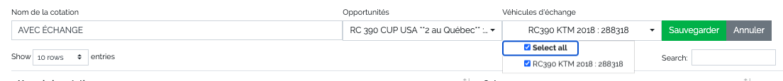 Lorsque la cotation est créée, tous les chiffres seront ajoutés dans la colonne. Vous pouvez toujours choisir la cotation que vous voulez. Comme dans cet exemple, nous avons une cotation avec échange et sans échange. Pour créer une cotation sans échange, vous ne faites pas l'étape 7.