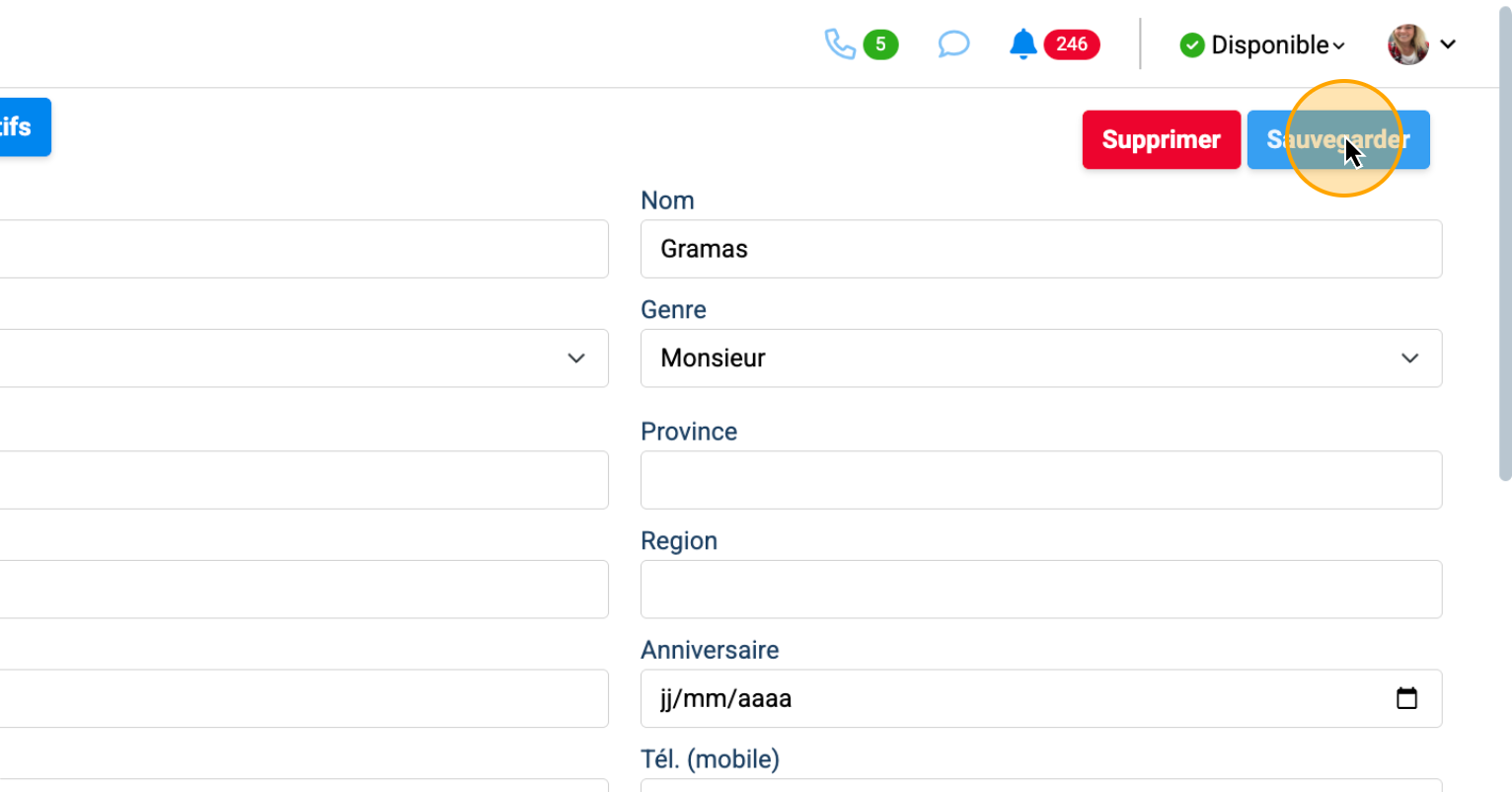 Cliquez sur "Sauvegarder" pur enregistrer vos modifications