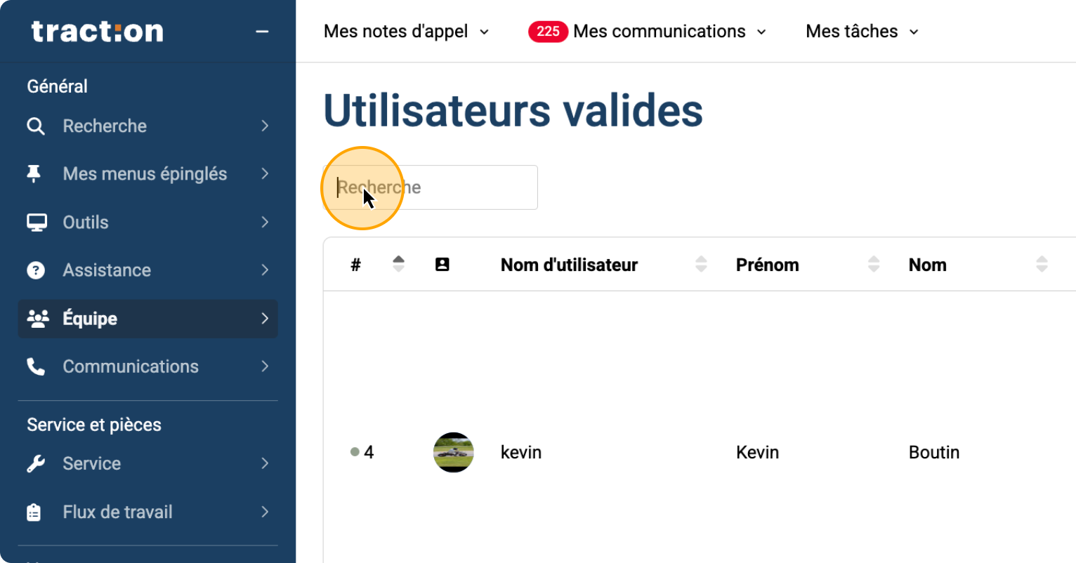 Cliquer sur "Rechercher l'utilisateur" et inscrire le nom de la personne