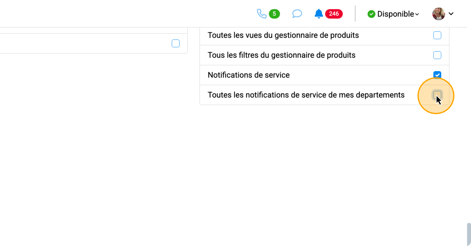 "Toutes les notifications de service de mes départements" permettent de recevoir les courriels automatiques de n'importe quel bon de travail ouvert où les pièces sont complètes.