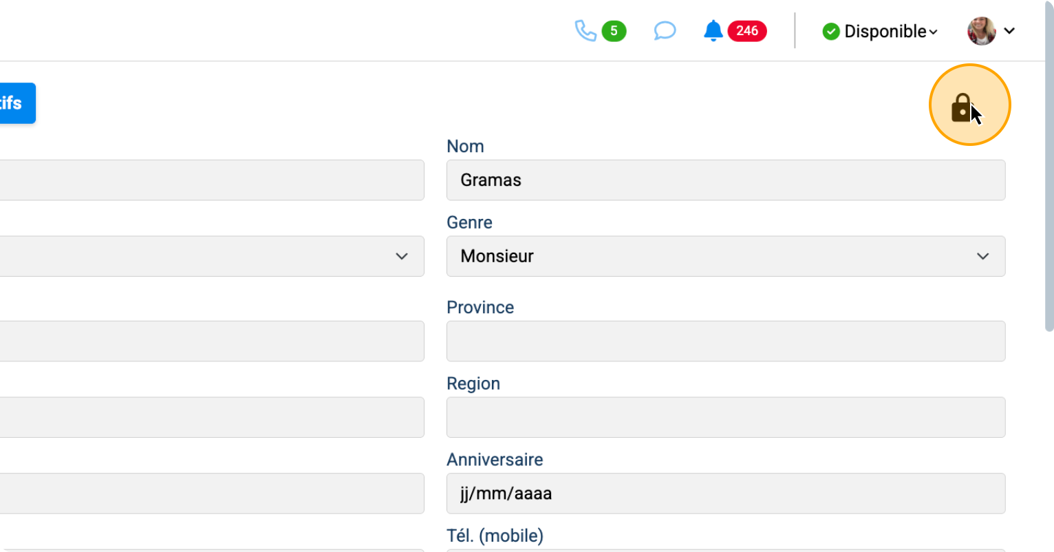 Appuyez sur le "cadenas" pour faire des modifications