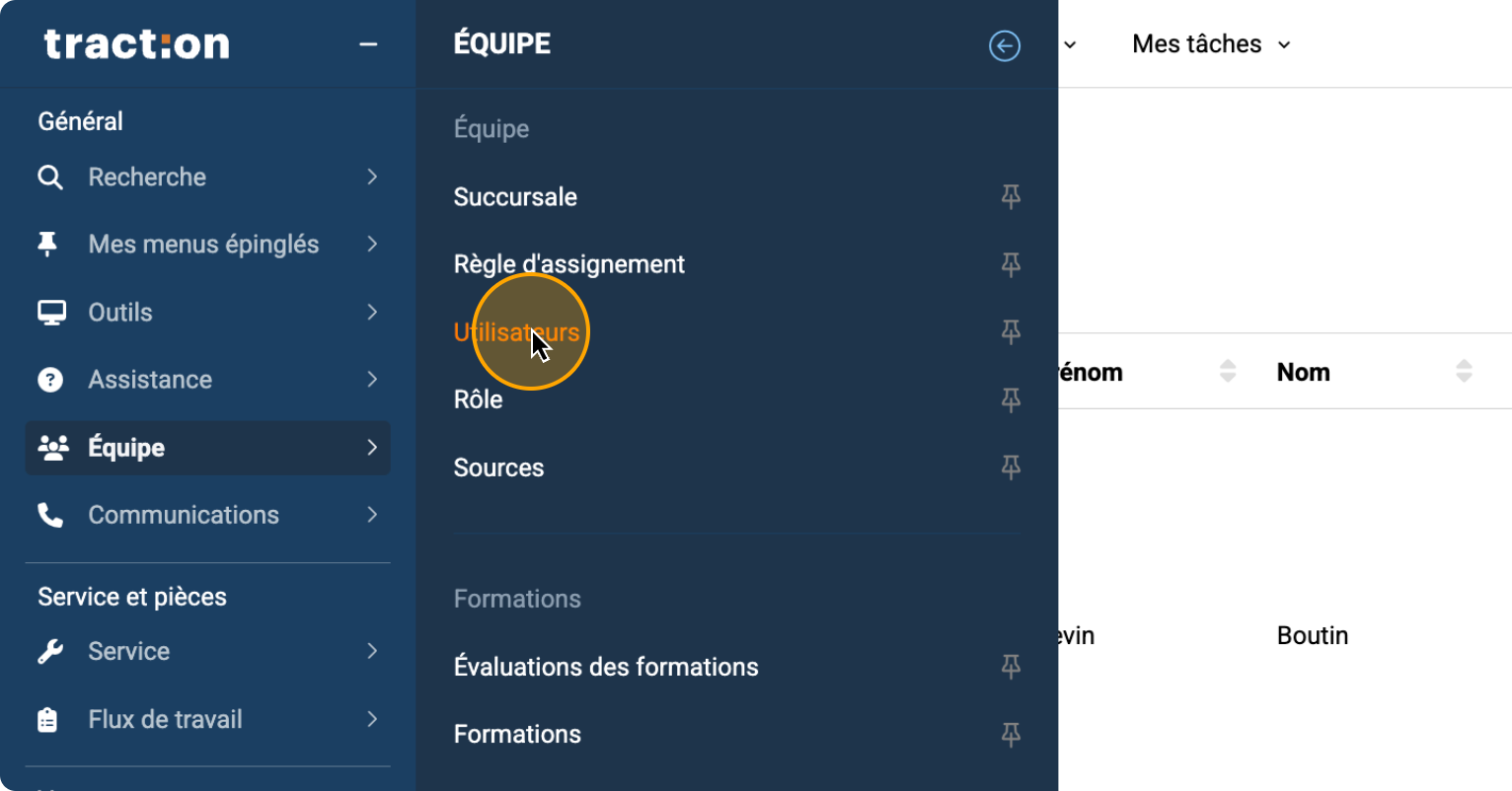 Cliquer sur "Utilisateurs"