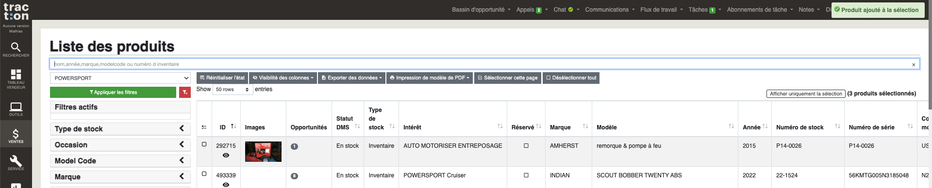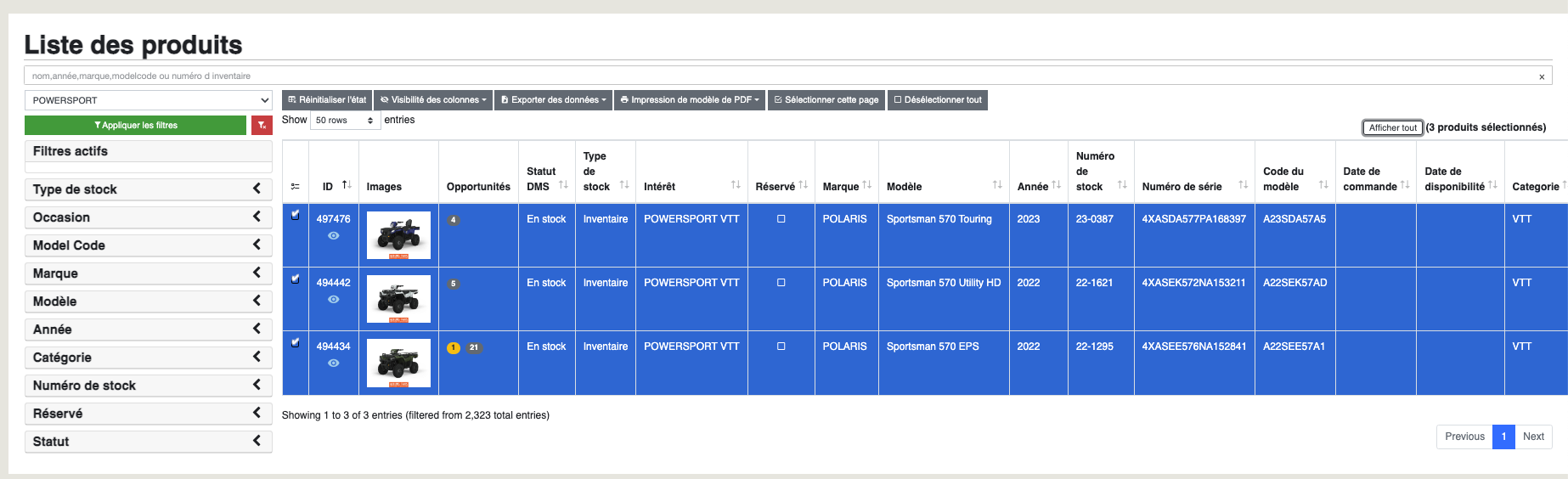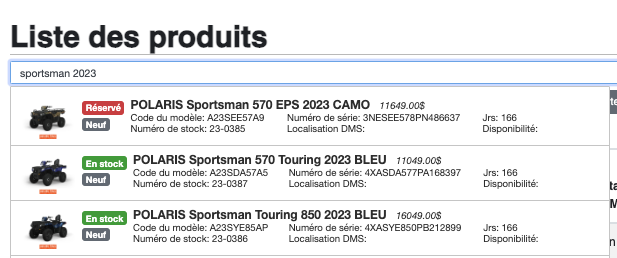 Lorsque vous cherchez un inventaire avec la barre blanche, vous avez le bouton à droite pour le sélectionner